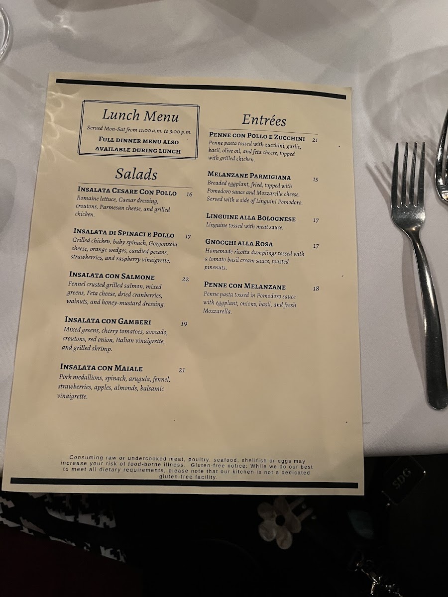 Seafood lovers will relish the Dentice Rosso Al Limone, a zesty grilled Red Snapper awash in lemon butter sauce, while Fettuccine Al Nero Di Seppia showcases homemade squid ink pasta in a flavorful medley of seafood.